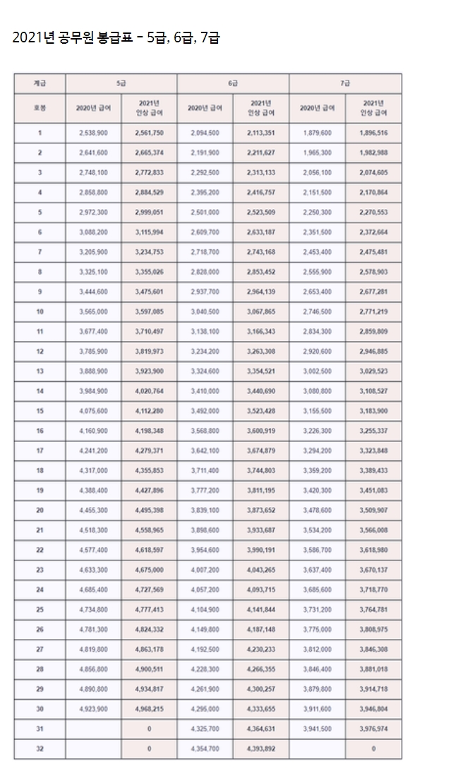 얼마 남지 않은 2020년 마무리 잘 하시고 2021년 공무원 봉급표 및 인상률에 대한 포스팅을 마치겠습니다.
