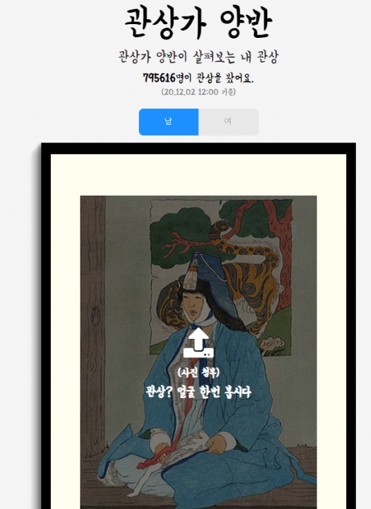 '인공지능이 말해주는 내 관상' 사이트에 들어가 성별을 선택하고 자신의 얼굴 사진을 첨부하면 '연애운이 좋을 관상' '강한 기를 가지고 있는 관상' '결혼하면 잘 살 관상' ' 평범한 인생을 살지 않을 관상' 등 다양한 관상 테스트 결과를 확인할 수 있습니다.