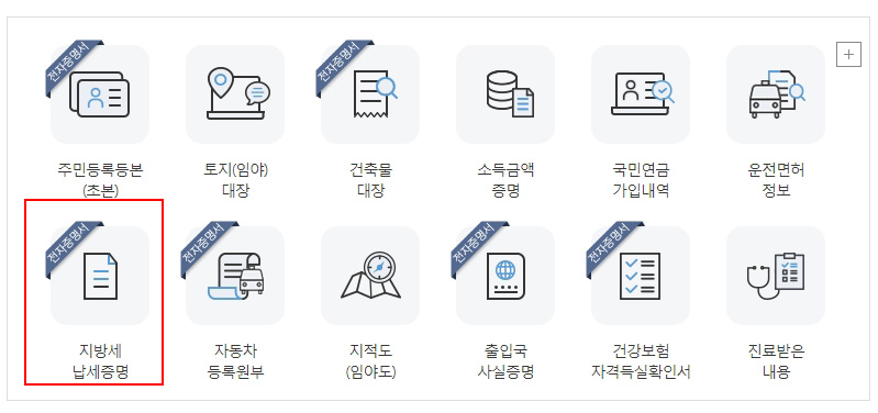 이중에서 지방세 납세증명 버튼을 클릭합니다.